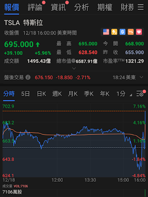 香港凌晨3-4點,TSLA走勢兩極化,低見$628.54, 隨後湧現大量買盤,創新高$695.